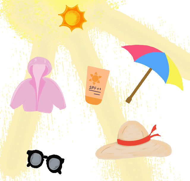 2、外出防晒要到位,除了涂抹类的防晒霜外,物理防晒更重要,遮阳伞,太阳帽,防晒服等都不可或缺。