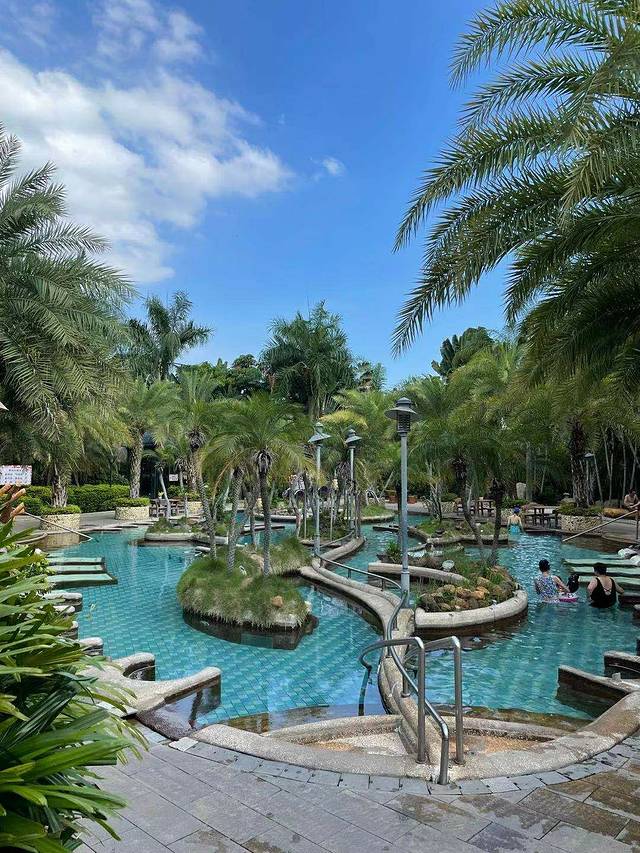 度假区里可以做的事情很丰富。整个温泉区非常大,没有一天是玩不完的。我先试了一下红酒池,这温度也忒高了,基本上所有的温泉池都在35℃以上,每走过两三米都会有一个小池子,什么当归池、茶香池、美人池,应有尽有,你必定会在这里找到你所想要的。想要选择游泳运动的也可以有专门的泳道,就在小孩子玩的儿童区旁边。