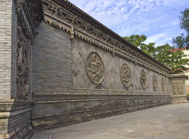 从北面的武定门进入,先找到五龙壁。这是原明代大同县文庙五龙壁,是大同现存诸龙壁中唯一的一座砖雕龙壁,从雕塑风格看,为清代遗物。非常整齐无损,静静地立于大十字街边,只有我围着欣赏拍照,