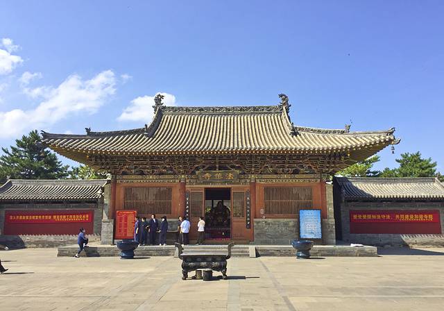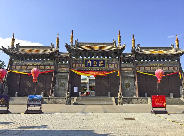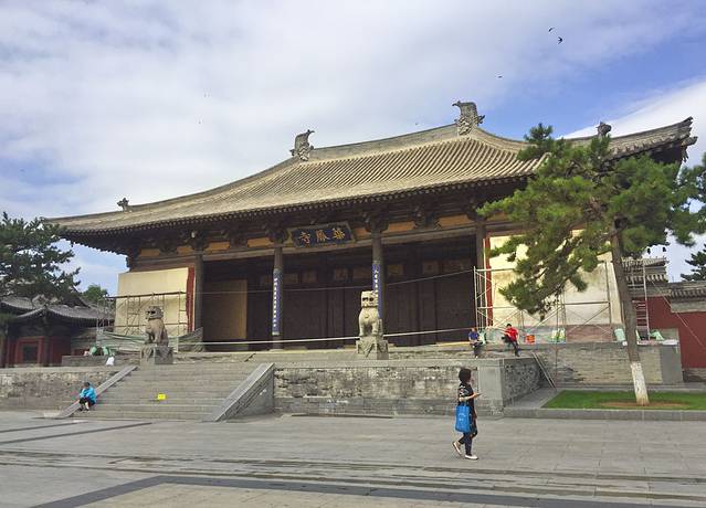 华严寺的山门在东面,门前好大一个广场,山门在维修。