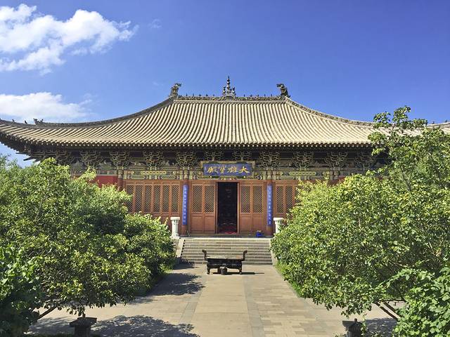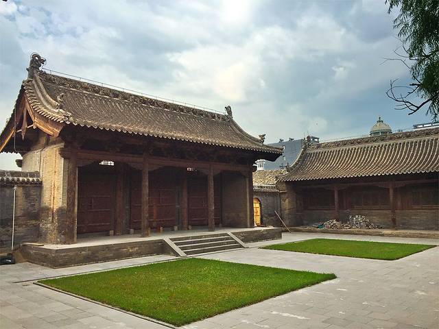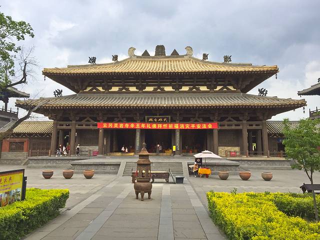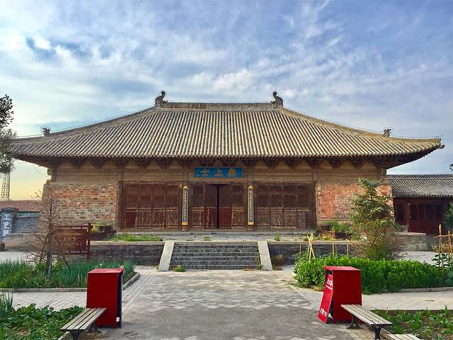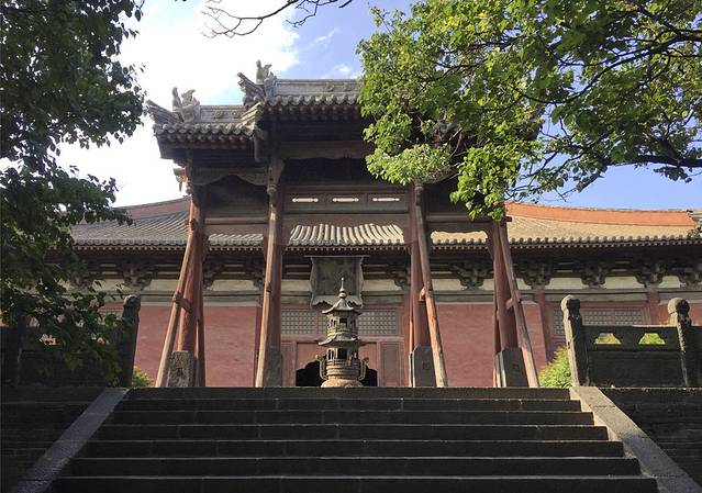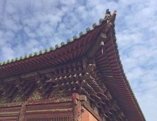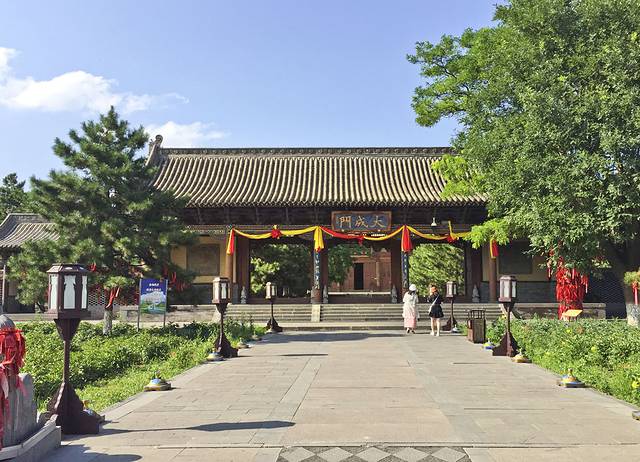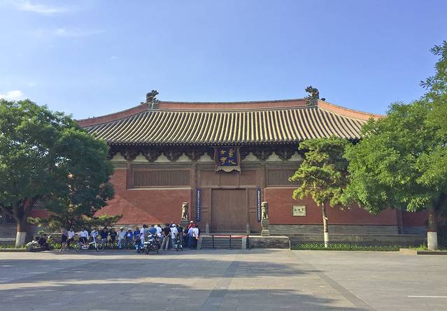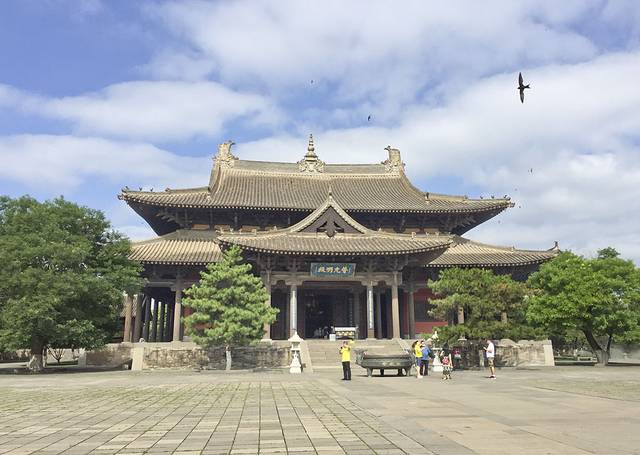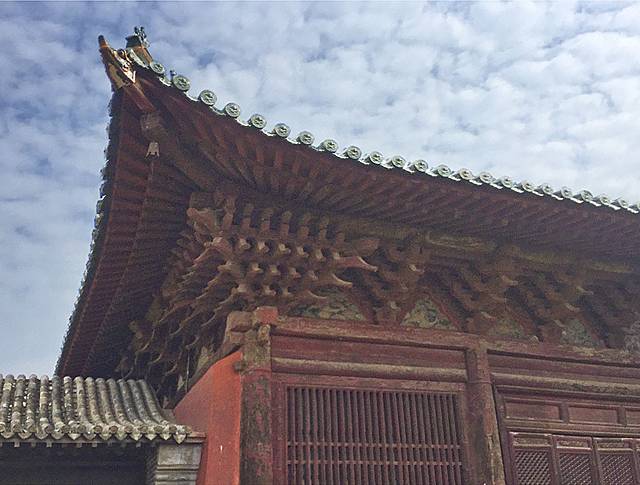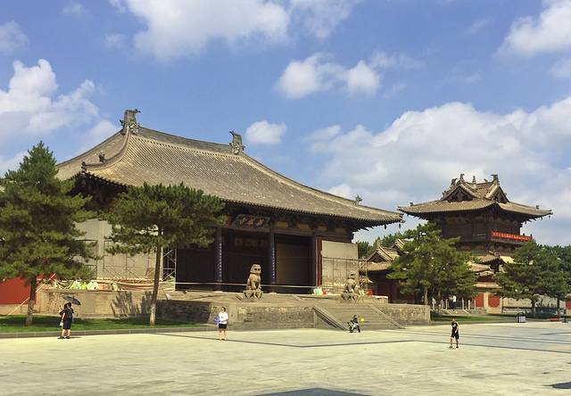 最后游览了善化寺,始建于唐开元年间,明代予以修缮,前为山门,中为三圣殿,均为金时所建。辽代遗构大雄宝殿坐落在后部高台之上。高低错落建筑,主次分明,左右对称,是中国现存规模最大、最为完整的辽金时期建筑。第一批全国文物重点保护单位。