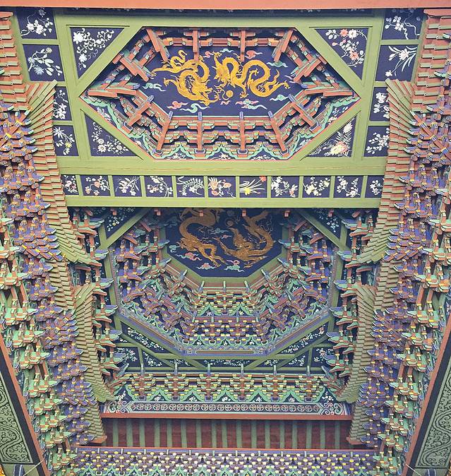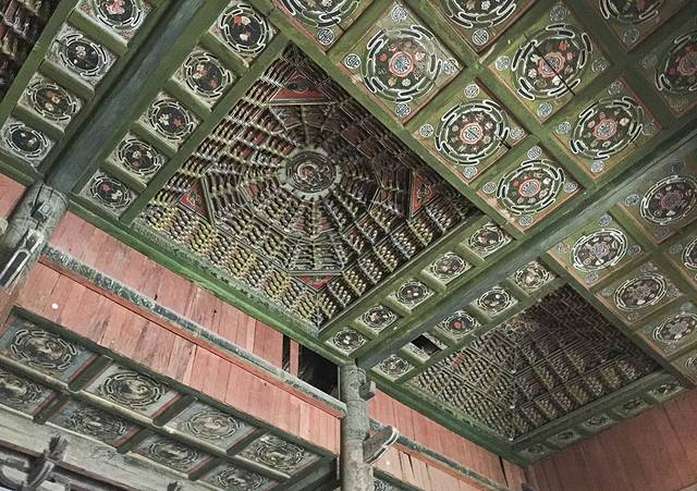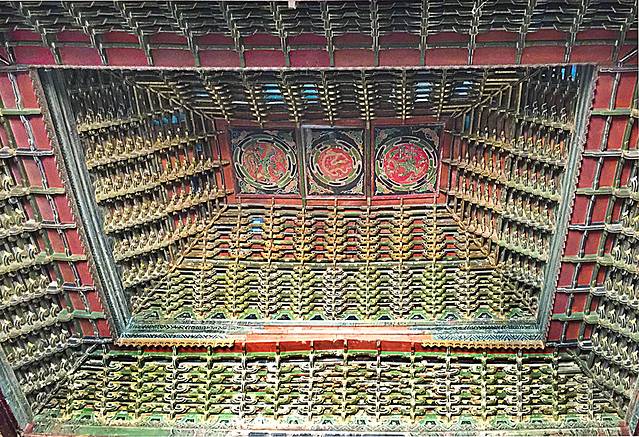 真是个非常有观赏性的大殿,不虚此行了。抬头看,原来殿内还在维修。