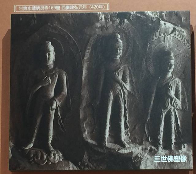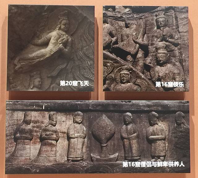 第十七窟,主像是三世佛,正中为交弥勒坐像,高15.6米。东、西两壁各雕龛,东为坐像,西为立像。明窗东侧的北魏太和十三年(公元489年)佛龛,是以后补刻的。