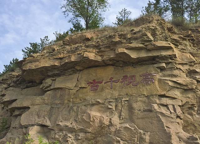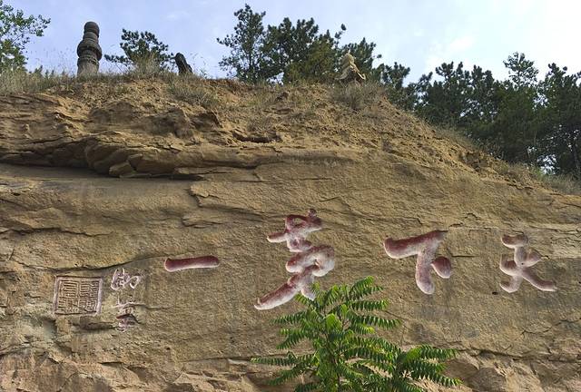 我看到有3处,在云冈石窟群东侧的石壁上刻有“世法所希”、 “天下第一”、“高视千古”红色大字的摩崖石刻,这些摩崖石刻是后代作品,不是当年的,但也出自名家之手。