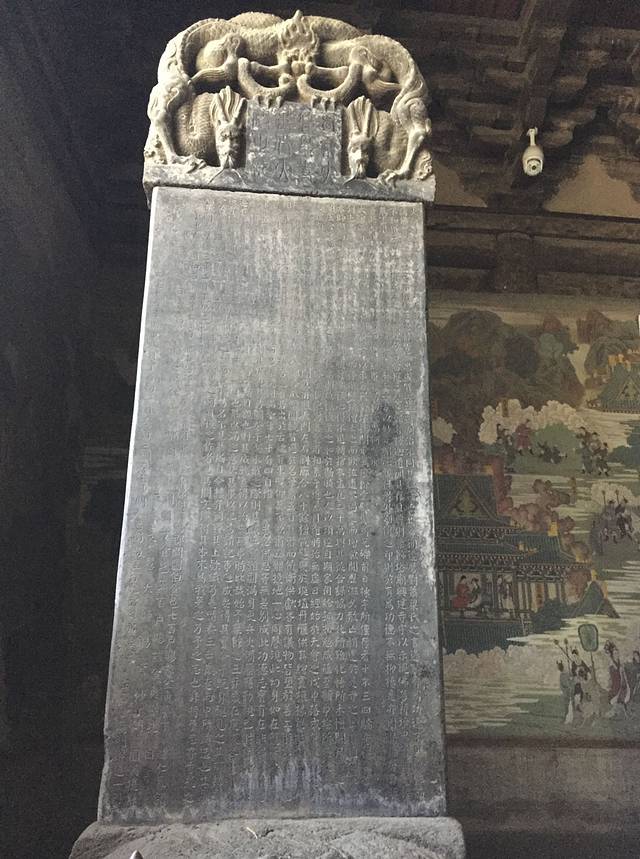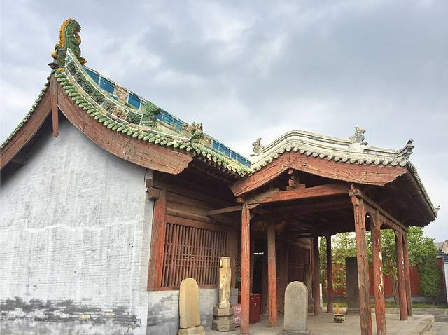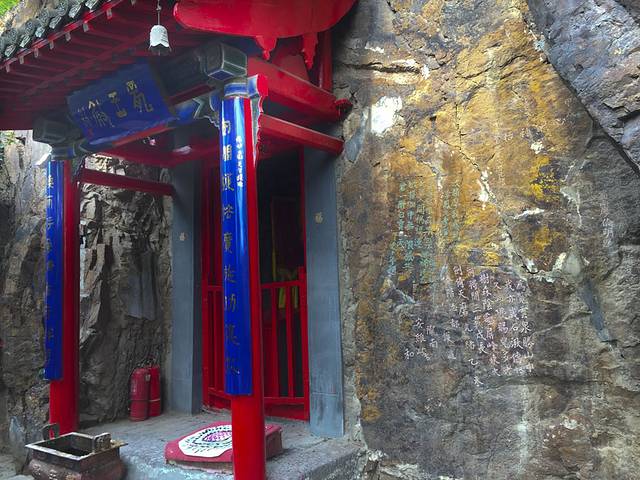 半路还有个观音堂,早上过来时许多女人在这里下车,现在下午了却是一个人也没有了。过来先看见山门前的双面三龙琉璃壁,明代遗物。寺西摩崖上镌有三米见方的双钩“佛”字,据考证为辽代遗迹。看来这个观音堂还有些看头。