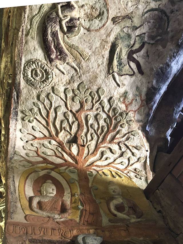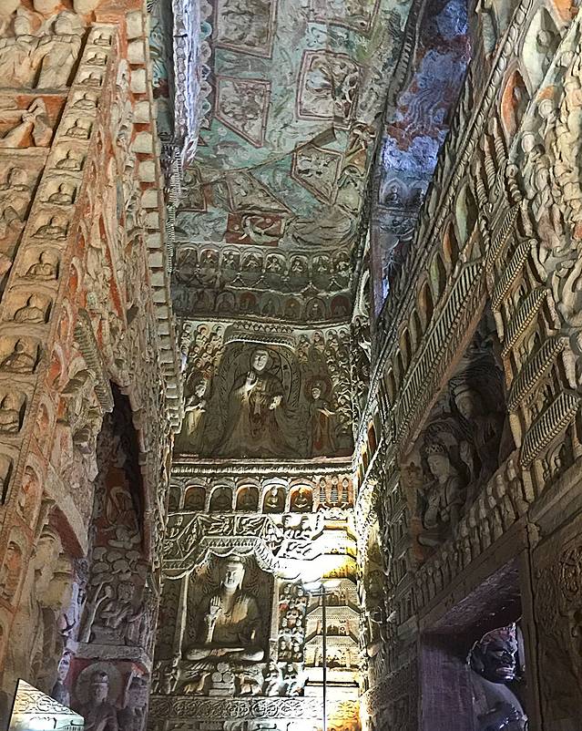 第五窟与六窟为一组双窟。上午游人很多,窟内面积小比较拥挤。一进去我真的被这华丽的石窟震撼到了,虽然之前也见过照片,但亲眼看时的感觉真实过瘾,无法形容的感受。