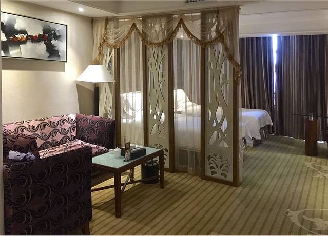 古城及附近的项目都结束了,便退房搬到王府至尊酒店入住,这个是用汽车网的积分换的高档酒店的高级标间。酒店是高层建筑,大堂虽然大,但闹腾腾的,不是我喜欢的环境。房间40平米,应该就算个套间了,其实我一个人真不需要如此大的房间。好处是楼层高外面是院子,附近没有建筑,不必挂窗帘。