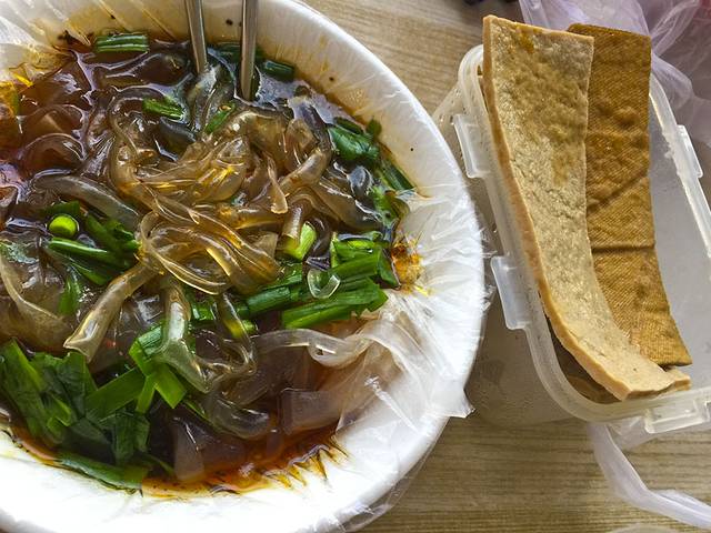 回来时提前一站看见一个快餐店,便下车打包了两个菜、米饭和粥,回房间慢慢吃了,这是我此行出来吃得最正式的一餐了,还是南方城市美食选择多呀。