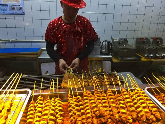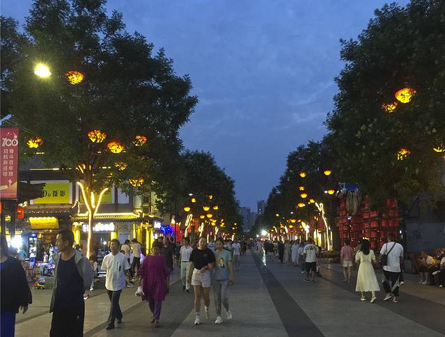 下午5:00才回到酒店休息。晚上7:00乘公交来到古城,晚上的古城与白天真是大相径庭,到处是灯光,到处是人群,到处是美食小吃,哈,热闹非常。