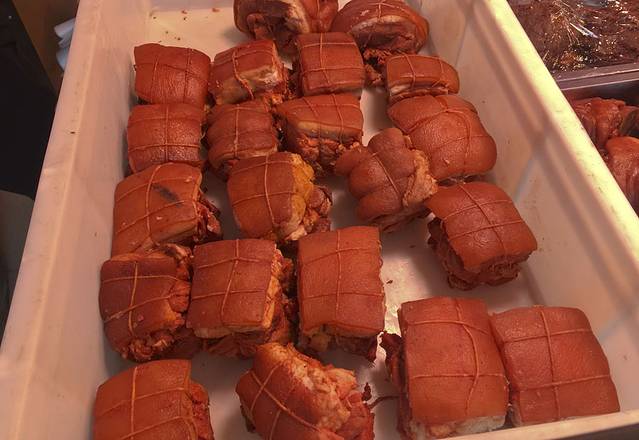 乘32路公交回到酒店,正好对面有一家柴沟堡熏肉,是张家口的美食之一,一大盘子大大小小的熏肉块,35元一斤,老板帮我挑了一块最小的16元。