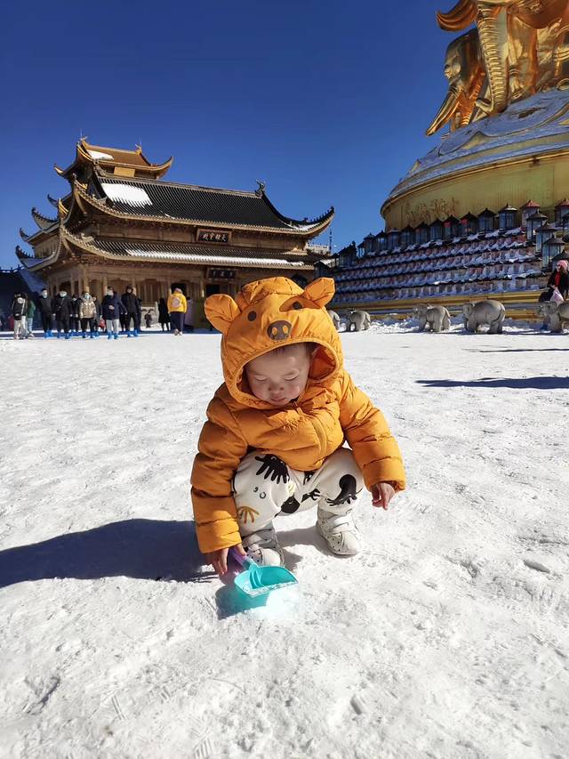 让我意外的是,周六峨眉山上下了场大雪,周日放晴了。让小朋友和大朋友都看到了峨眉山漂亮的雪景~