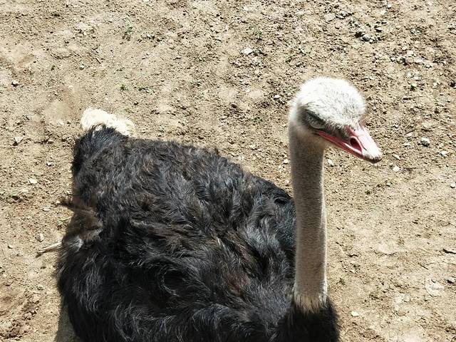 穿过郁郁葱葱的树木,我们来到鸵鸟园,这里黑色毛发的是非洲鸵鸟,而另一种灰色毛发的叫鸸鹋(er miao),大家要学会区分。