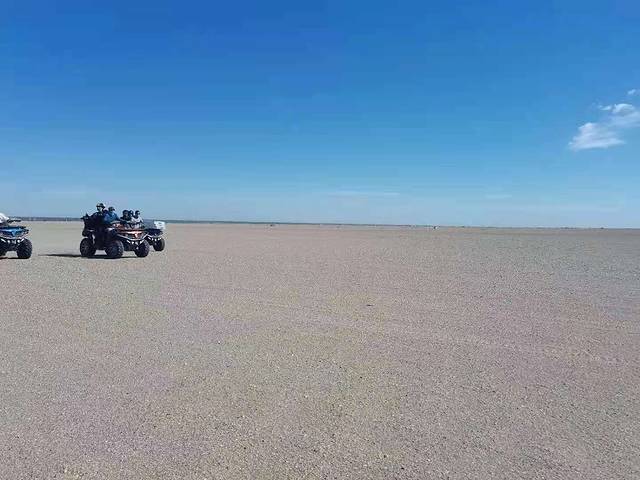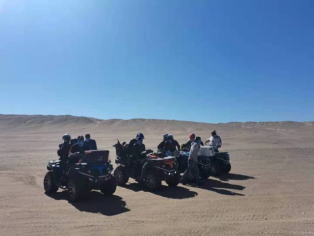 九点集合后,整装待发,每个人都像是专业的车手,酷炫十足,11人越野车队,浩浩荡荡,像是要征服这片沙漠一般。我们开了四辆ATV(沙地摩托车)和一辆UTV(沙地四驱车),启动发动机的声音响彻天空,“突突突突”,呜呼~,车手们攥紧油门出发了!