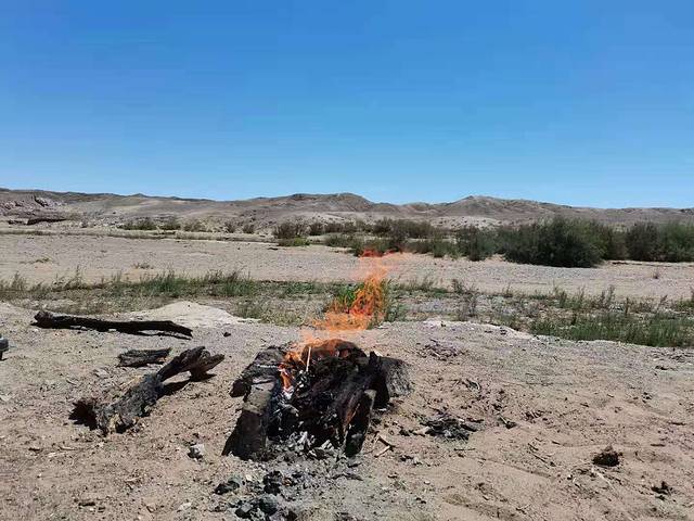 我们找到一处树下阴地,用石头搭起了烤架,开始了愉快的户外BBQ,吃上了敦煌特色的漠葛家秘制红柳烤肉,羊肉一点都不腻,非常的好吃。还有当地的特色饮品杏皮水,酸酸甜甜,以及最简单的快乐肥宅水,但是这可是在户外沙漠大树下,加倍的自然,加倍的放松,无限的快乐!就好比在太空飞船里吃冰淇淋和在大街上吃冰淇淋相比,愉悦的等级截然不在一个层面上。餐后在沙漠的河边喝着饮料吃着西瓜,真的是件很美妙的事情,在沙漠中的西瓜像是被注入了魔力般,清甜至极,甘爽透心。哇咔咔,好甜的夏天!