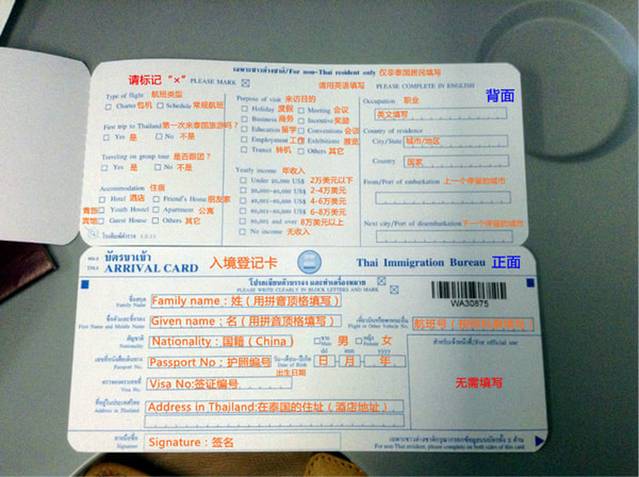 1. 中国旅客去泰国可以持护照在机场办理落地签,在飞机需要填写一张入境登记卡