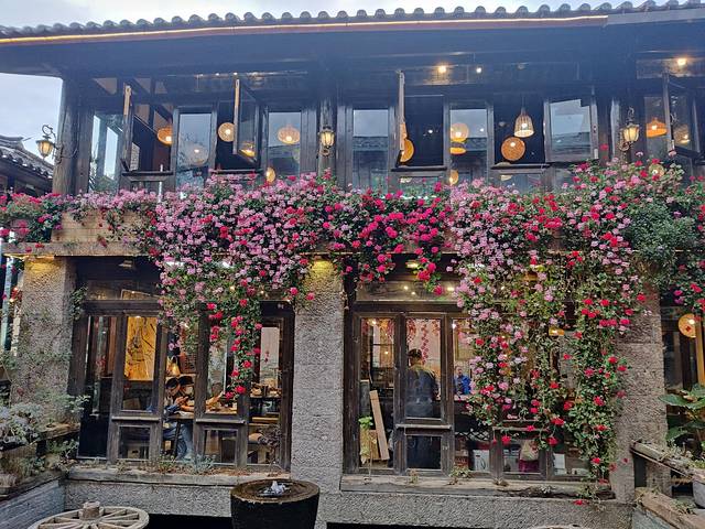 从店门到位置,眼睛被无数的花朵和绚烂的背景色填满,强烈感受到云南气候对植物的友好。