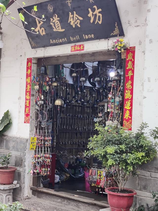 镇里的铃铛店统共四五家,价格因具体尺寸、锤纹图案、材质不同有所差别,中小铃铛一般50块到一百出头不等,大铜铃基本三位数(可照着店家开价的七折左右入手)。