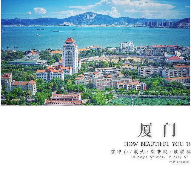 第四天去南普陀寺,庙宇香烟,青塘碧荷,山间的红丝带是香客们在观音座下许下的虔诚祈福。值得一提的是,登临南普陀寺的后山,临近山顶有一处观景胜地。海湾上的渡船,海上的岛屿,和滨海的厦门 大学在这里都一览无余,其视野辽阔,其观景体验一点都不输给在日光岩上赏鼓浪屿全景。