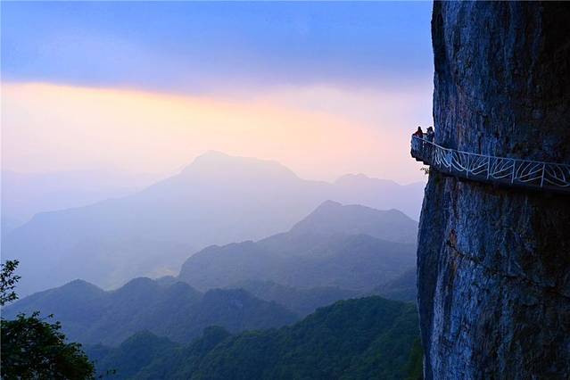绝壁栈道看日落,晚霞绮丽,天光不曾有尽