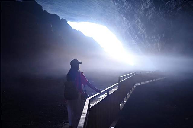 我们沿着山路蜿蜒而上,虽然夏天日头正烈,山上丛林茂密,在丛林的遮挡下也不觉得多晒,夏天出门,还是提醒小伙伴们做好防晒,不要像我一样晒黑一层。在到古佛洞的路上看见一片野生竹林也是让人觉得心里开心的事。没有家生竹子的排列,反倒多了一份生机,有一种独特而又野性的美。刚到洞口,就已经觉得是另外一番景象了,凉气铺面而来,一下子切换到了凉爽模式。导游告诉我们,里面温度只有8度左右,这已经不是在避暑了,完全在过冬。还好我带了外套,也有很多朋友在边上租外套,很方便。