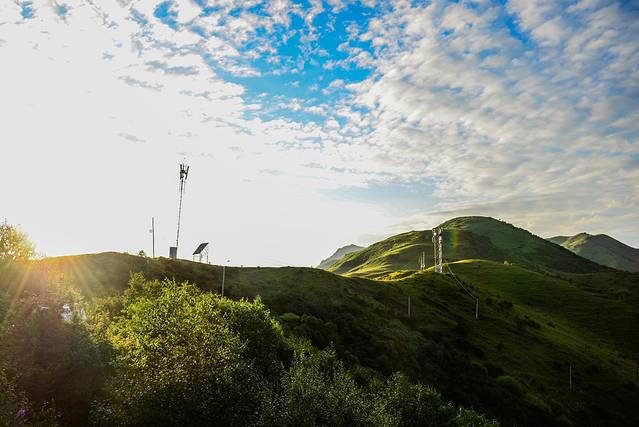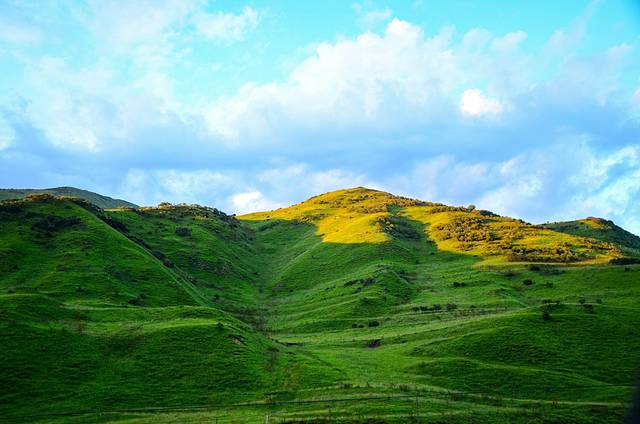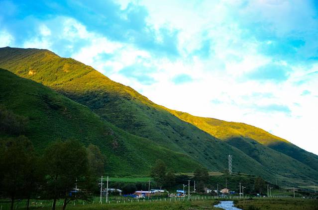 风景不止在前方,还可以看看旁边的山,此时阴山和 阳山 在夕阳的照耀下,对比很强烈;绿油油的山顶配着夕阳照耀下的金黄