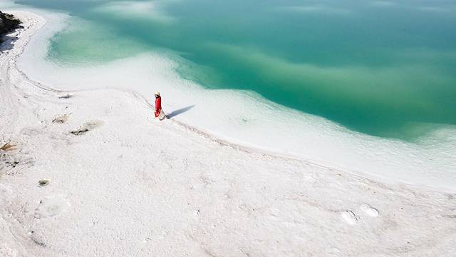 尽量不要走进盐湖中,高浓度工业盐水对皮肤伤害很大,如果想进去拍照,记得带水,上岸后清洗干净;