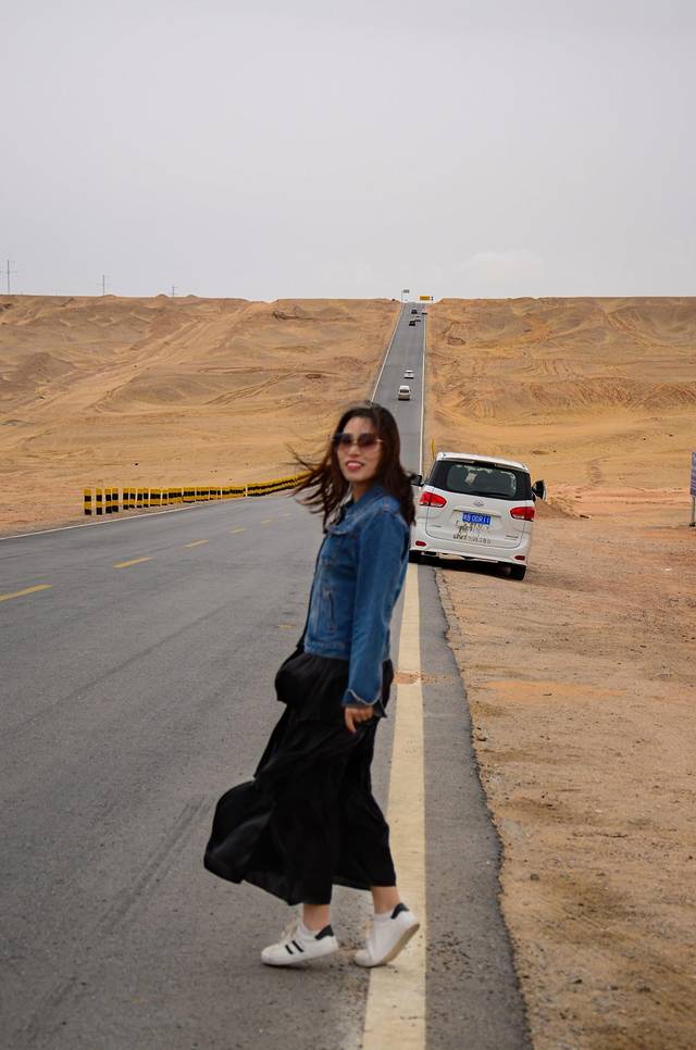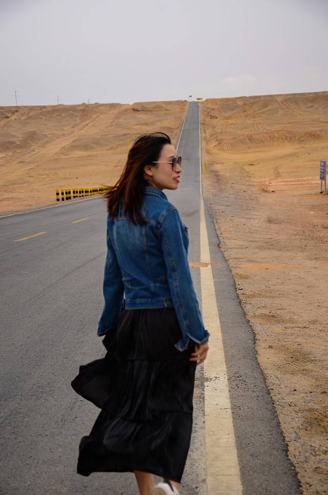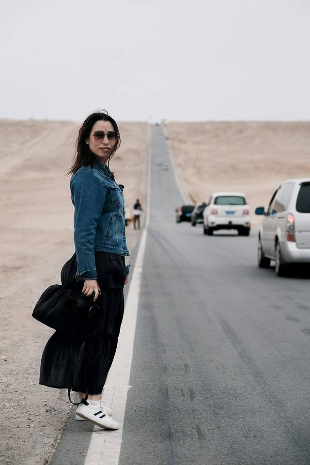 其实路上这种荒凉、苍茫的感觉,配上牛仔服,感觉还不错;