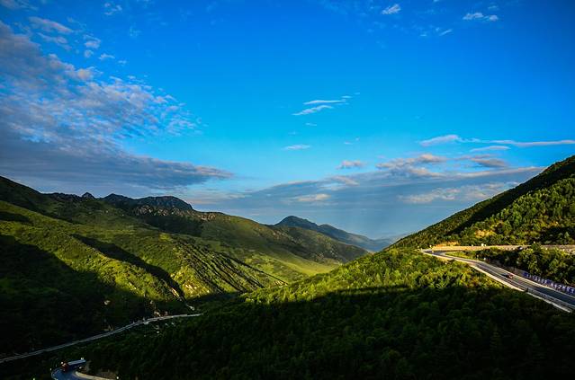 走到 定西 市的 漳县 有个观景台,我们在那停车休息了一会,盘山公路在蓝天白云的映衬下,也变的很美;站在山间眺望远方;一点也不热,风吹过刚刚好;日落时分的光线很柔和,也很适合拍照;稍微调一点参数,明暗度和色彩饱和度就能让照片变的更有层次