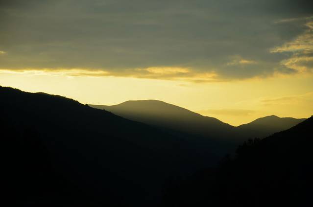 夕阳落下那一刻,可以把镜头拉近,拍一张山间的彩霞,有点像晨曦的感觉