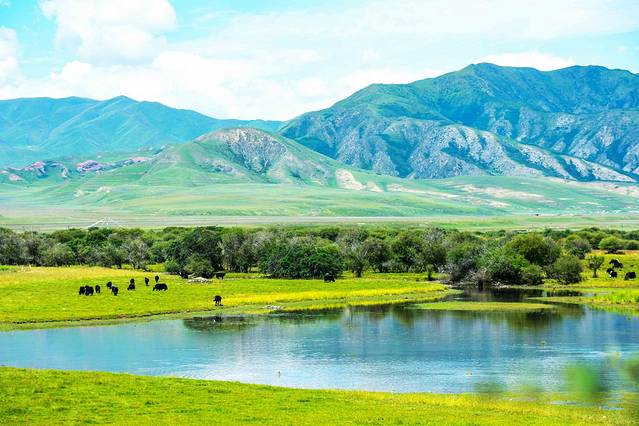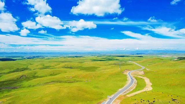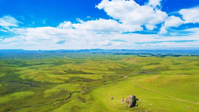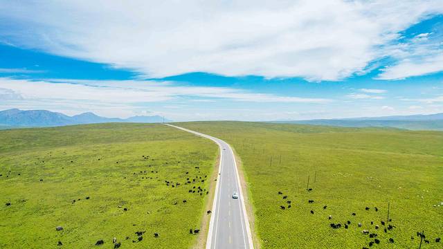 驾车在群峦间的高速公路上,慢慢地驶向草原的深处。从进入这片大草原开始,所见的每个场景都是一帧美轮美奂的画卷。这里的山峦不是高耸陡峭的险峰,相反,却是低矮平缓的小山包。坐在车上,行驶在蓝天与青草间。将思绪放空,满载着欢乐,在美仁草原开启一场愉快的旅行。