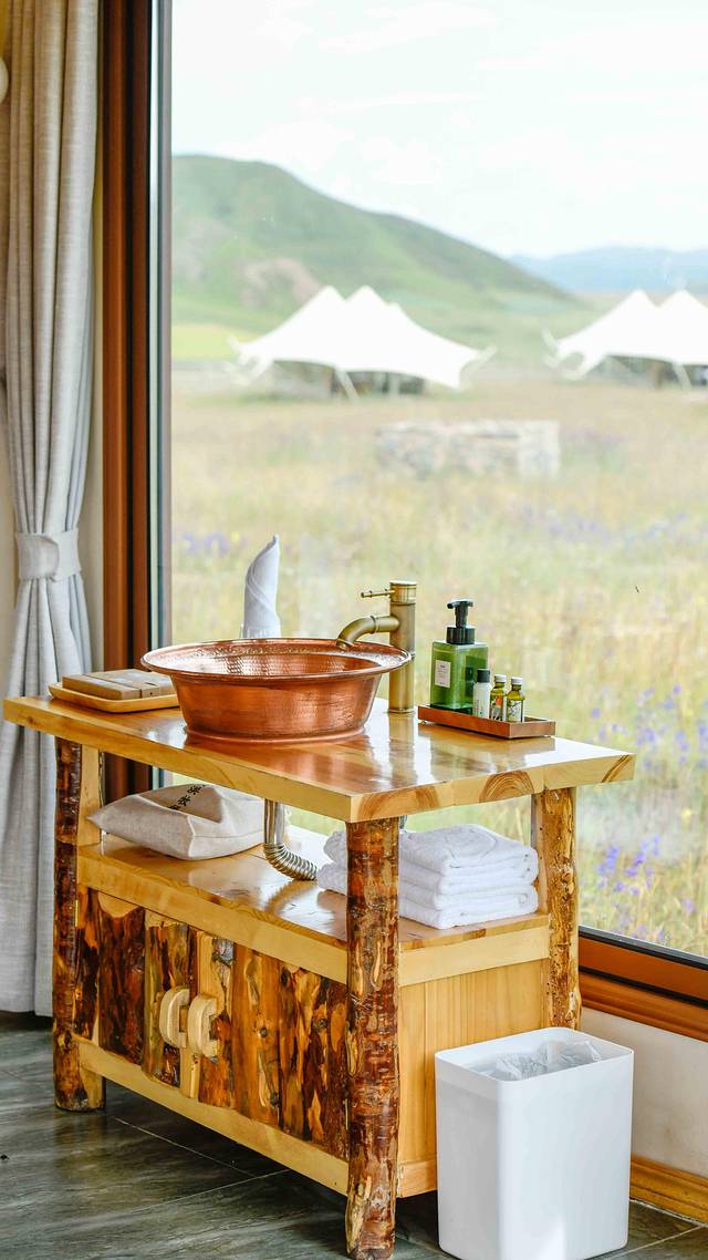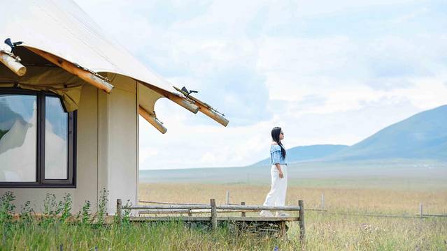 清晨,太阳缓缓的从东方升起。阳光透过玻璃射入帐篷,点亮了整个房间。伴随着鸟儿的鸣叫,在大自然的拥抱中醒来。简单的洗漱完毕,走出房间,就能一览清晨草原的模样。一呼一吸间,便可将清新的空气吸入身体里,吸入了清新空气的身体似乎也会变得轻快起来。顺着小径,到达酒店的餐厅。品一口美味的藏式早餐,尽情的享受着惬意的清晨时光。