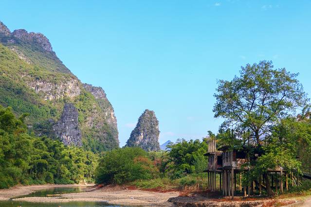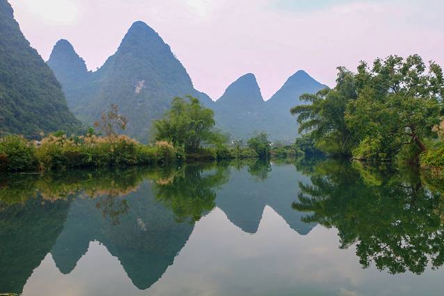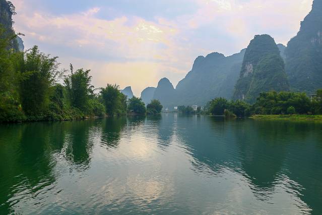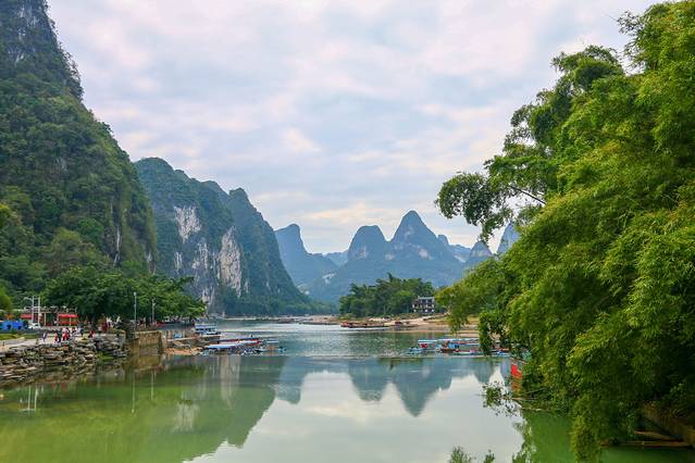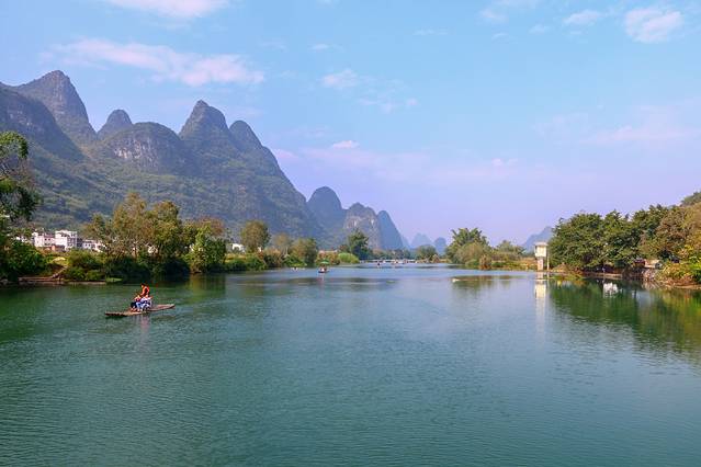 杨堤码头可以说是漓江竹筏漂流的真正起点,从杨堤码头开始到兴坪古镇,这一段是漓江的精华段,两岸的风景也是最美的,而杨堤码头作为漂流起点,风景自然不会差,正是为了漂流漓江精华段,我们就把杨堤码头作为桂林游玩的第一站~~~