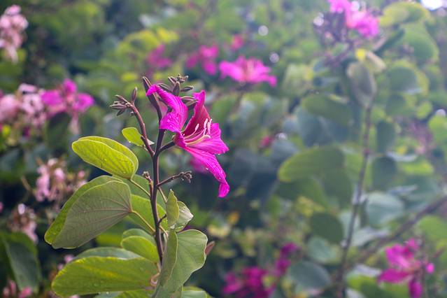 景区里种了好多紫荆花,里面的工作人员告诉我们花的颜色分为两种,是由于雌雄的原因造成的,具体什么色是雌,什么色是雄,我也没问明白~~~
