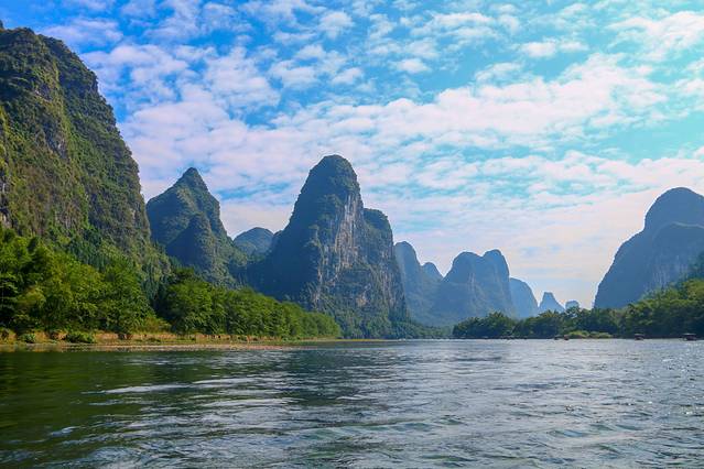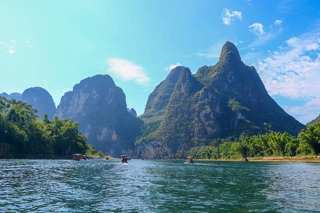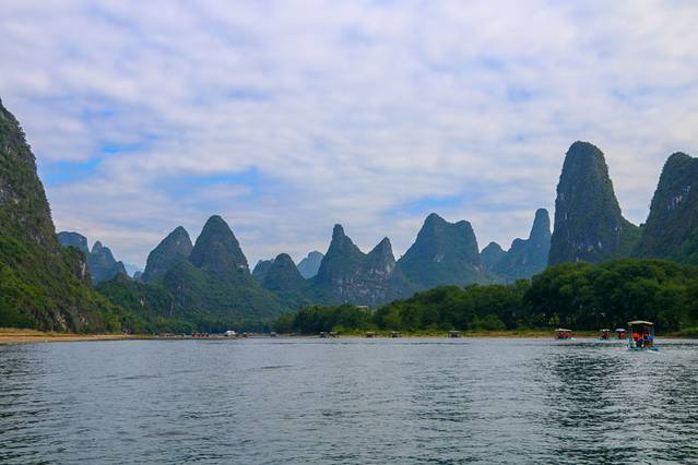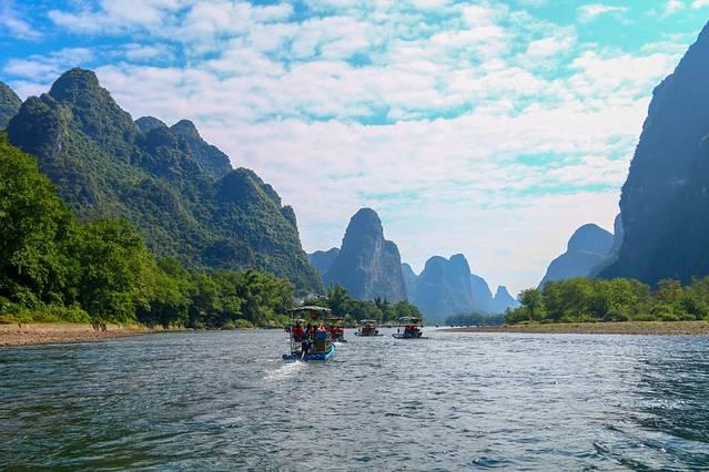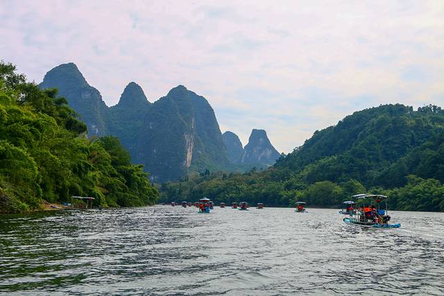 1⃣漓江游船,从桂林坐游船到阳朔,全程观看漓江两岸景色,起点是从桂林的磨盘山码头或竹江码头——阳朔龙头山码头,时间是早上7:30-10:30,只有这段时间有船,也是为了和下游的漂流船错开时间,全程四个小时左右,也是最便捷的方式从漓江到阳朔,缺点是在游船上,赏景不够灵活。要注意的是桂林市区到磨盘山要预留一小时车程,