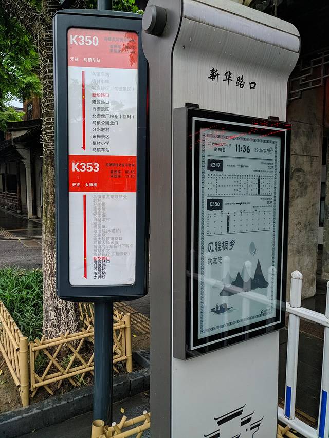到了乌镇汽车站下车后可以看到K350的指示牌,带这趟公交可以直接往西栅景区。我因为第一天订了南栅旁边的民宿,所以中途下车了。