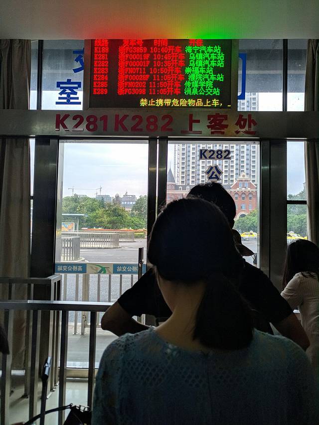 桐乡站出站直走50米右拐就可以看到K281和K282的提示牌然后排队上车前往乌镇汽车站(这趟车的收费是5元,扫码上车,然后下车还得扫码扣款,回的时候忘记了觉得自己挺那啥没素质的,后面发现是过了1天的样子会自动扣款)。