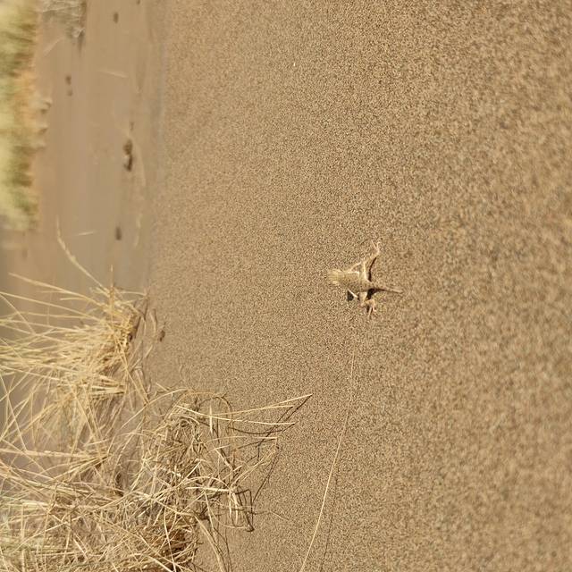 六点多乘坐越野进入沙漠,海盗船般的体验感使得同车的小伙伴惊喜不已。到达营地后在凉棚下小憩了一会儿,便拿上划沙板向沙坡出击了。自己努力后看到的风景果然不一样,下滑的过程中感受着带有沙漠气息的暖风拂过身旁,享受着德福般的丝滑~