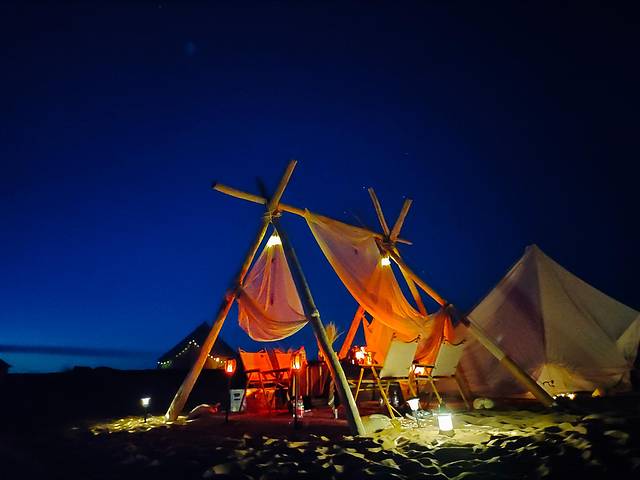 想体验真正的沙漠之美,便参加了这里的独家野奢活动。初入沙漠腹地,内心满是震撼,漫无边际的大漠黄沙,扑面而来的冲击感,让我开始期待这趟旅程。