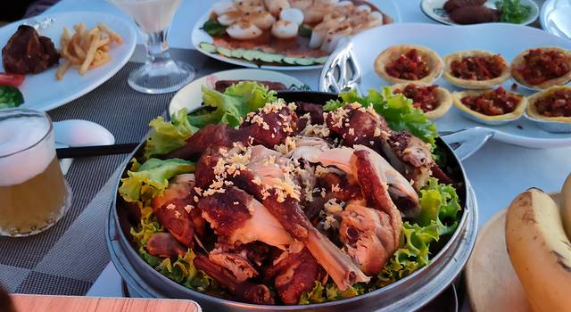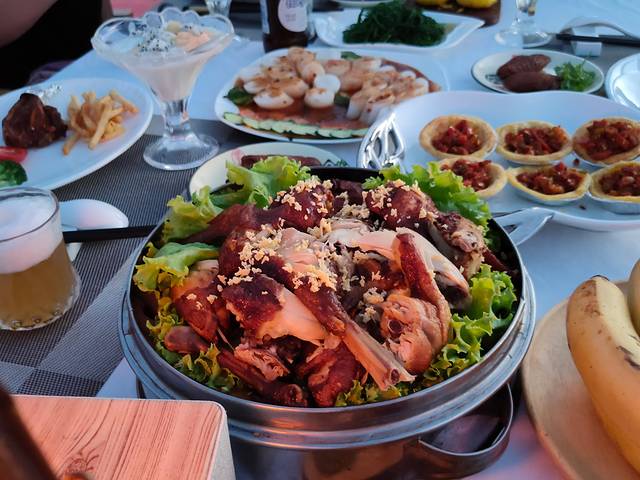 日落后晚宴开始啦,能在精致的基础上做到餐食量很大真的不易,大部分是一些当地特色菜,这里必须夸一句,不全都是羊肉哦,大西北玩下来每天都是各种羊肉,真心有点吃腻了,鸡肉上桌时激动的差点老泪纵横。整体味道蛮不错的,荤素搭配,水果 汤羹一应俱全,不过菜量丰富到有点浪费。请问可以打包吗?(来自资深干饭人的肯定)