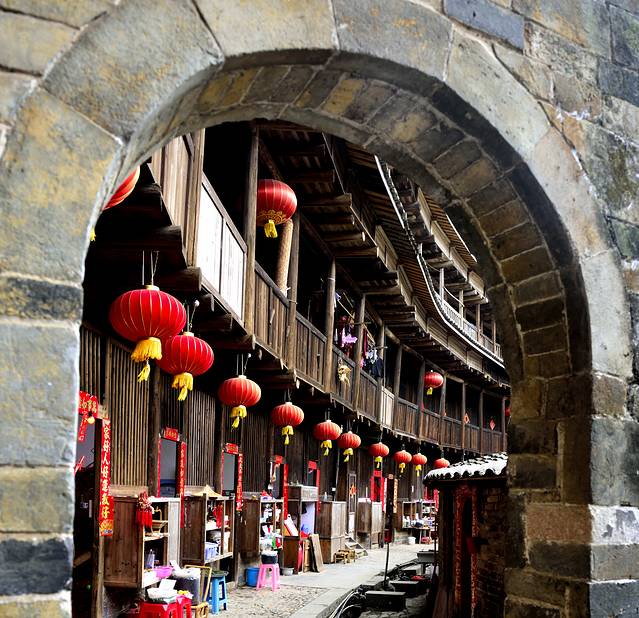 永定土楼位于福建省龙岩市永定区。永定,是纯客家县,是福建省拥有最多土楼的县,总共23000余座。是世界上独一无二的神奇山区民居建筑,是中国古建筑中一朵奇葩。2008年7月,成功列入世界遗产名录。它历史悠久、风格独特,规模宏大、结构精巧。土楼分方形、圆形、五角形、八角形、日字形、回字形、吊脚楼等多种类型。永定区共有著名的圆楼360座,方楼10000多座。其中最著名的土楼有,福建土楼王-承启楼,土楼王子-振成楼,土楼公主-振福楼。其中,承启楼是福建土楼当中建筑规模最大的,2010年进入世界吉尼斯最大土楼纪录。