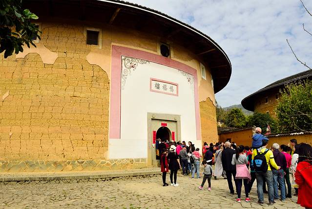 2月7日(第四天),我们的主要行程是——福建永定土楼景区,其实它不属于厦门,而且离厦门还有点远,我们大概坐了三个小时左右的车才到达目的地。