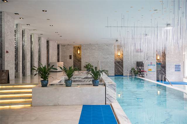 配有独立会客厅、地热系统、按摩房、室外泳池和温泉池,