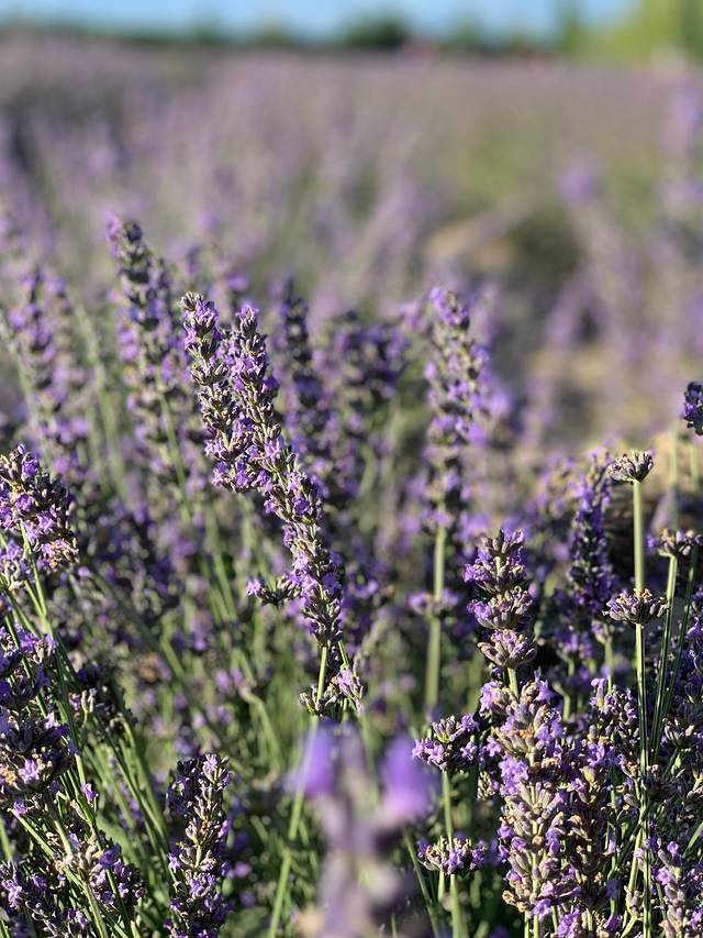 薰衣草的盛花期为每年6月中旬到7月中旬。我们此时来到庄园,大片的薰衣草已收获,只有大约40亩的新品种公主7号还在开放。