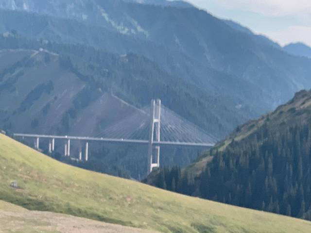 离开赛里木湖,我以为要前往果子沟大桥。后来在蔡导的耐心解释下,才明白我们只能在车上遥望果子沟大桥。果子沟大桥位于伊犁哈萨克自治州霍城县,地处果子沟与将军沟交汇处,其桥面距谷底约180米,途经该桥的是连霍高速公路(连云港—霍尔果斯高速公路,国家高速G30)。