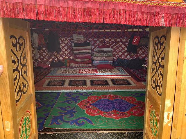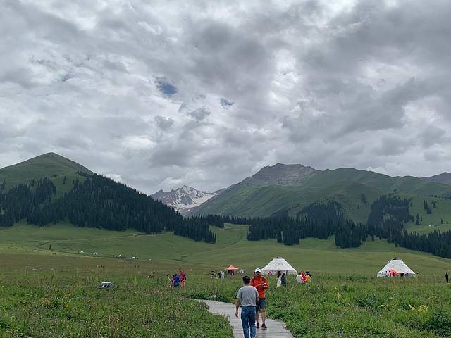 午餐后很快我们就来到了世界四大高山河谷草原之一的那拉提草原。那拉提,意为:最先见到太阳的地方。这里集蓝天白云、冰川雪峰、森林草原、峡谷河流于一体,是世界上哈萨克人口聚居最集中的草原,曾被上海大世界吉尼斯总部评定为“哈萨克人口最多的草原”、“哈萨克毡房最多的草原”,是集中反映和展现哈萨克族传统生活习惯的“露天博物馆”。