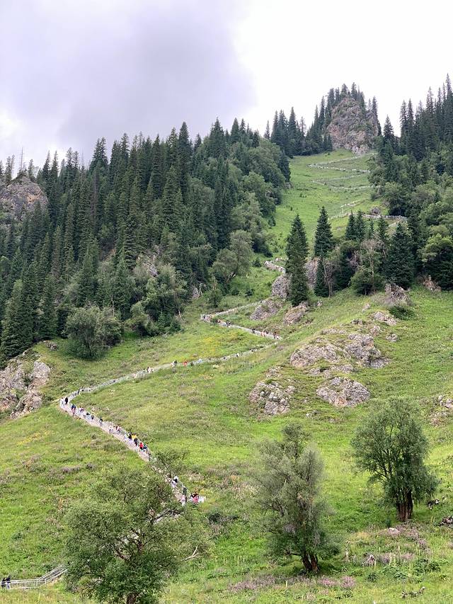原计划我们从那拉提镇出发,经隧道到乔尔玛。但未曾想到隧道口昨日塌方,我们只能改道。虽然车程加长了,但一路上途径唐布拉景区,倒也是意外收获。