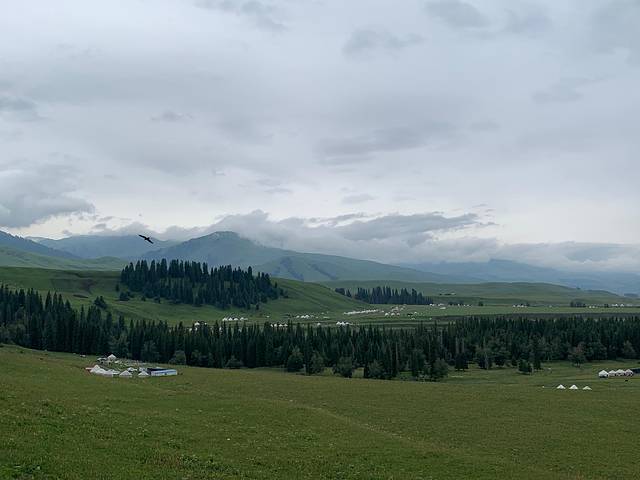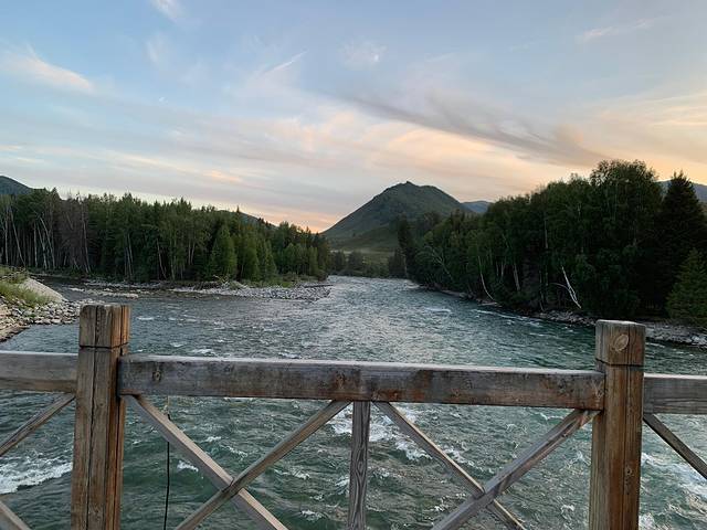 禾木村坐落在重山阻隔的一个大河谷里。在群山环抱的开阔地里,图瓦人的尖顶木屋、原木围栏、肆意生长但又不嫌杂乱的野草、牲口棚里的牛马、奔腾而过的禾木河、尽情飞翔的老鹰乌鸦.....夕阳西下,炊烟袅袅,牧人归来,小桥流水,水雾氤氲,景色如诗如画,尘世间一切烦恼就此烟消云散。