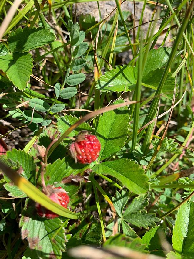 登山途中,偶遇两位从巴音郭楞蒙古自治州前来游览喀纳斯景区的大哥大姐。他们热情地招呼我吃野草莓。在青岛,也有野草莓,但味道却是与此处的相差甚远。这里的野草莓酸酸甜甜,绵软可口,我不禁停下了上山的脚步,和大哥大姐一起寻起草丛中的野草莓来。大哥告诉我,他的祖籍是山东肥城,但从小生长在新疆,还未回过老家。跟他们的交谈过程中,我记下了“大河口”“金沙滩”,两个巴州的景区名字,以后有机会我要到那里去看看。