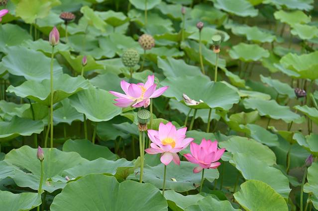 穿过睡莲观赏区,荷花观赏区到了,一片蝉鸣提醒这人们盛夏要结束了。