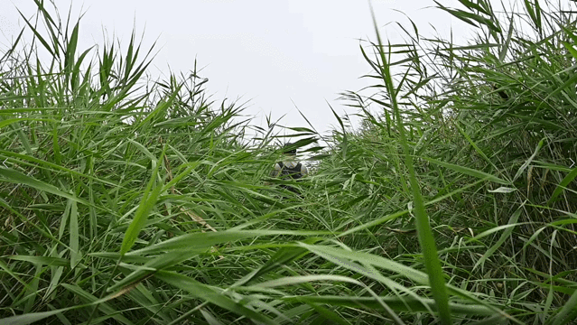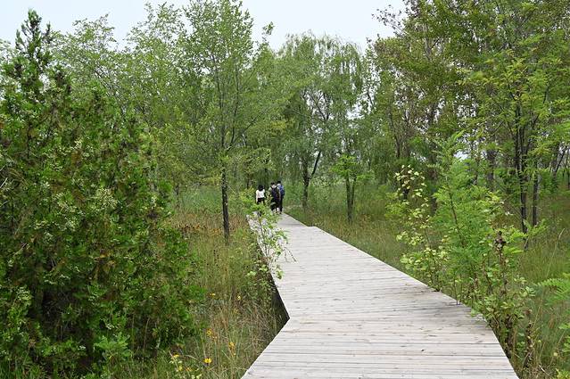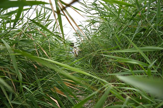 栈道的两侧长满了芦苇,经过一个夏天的疯长,芦苇几乎把整个栈道给遮掩住了,最茂盛的一段简直就看不到路了。